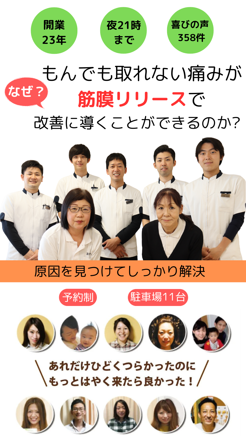 同じような症状の方をたくさん来ていただき、楽になり喜んでいただいております。