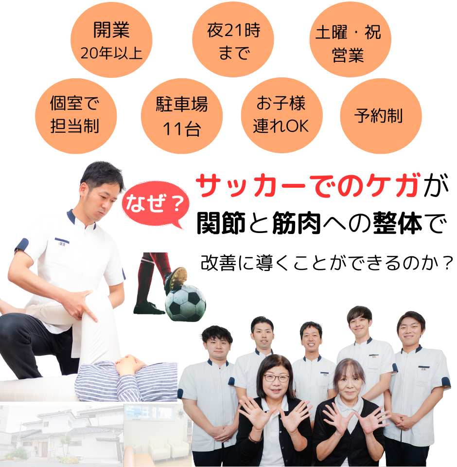 などがあり、当院では多くのサッカーをしている方が来院され良くなっていただいております。