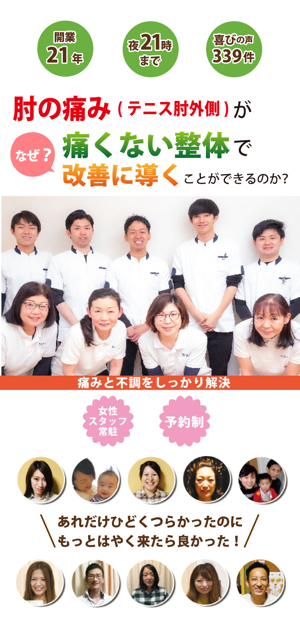 同じような症状の方をたくさん来ていただき、楽になり喜んでいただいております。