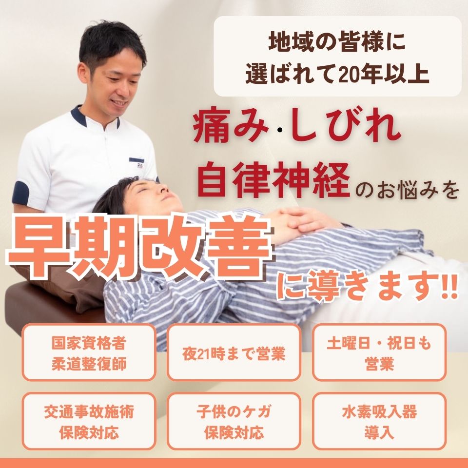 もちろん、痛みやコリを良くするだけではなく、再発を防ぐことにも自信があります。滋賀県彦根市で開院してから20年たちます。今では5人の施術者年間述べで1万人以上の方に喜んでいただくことができました。