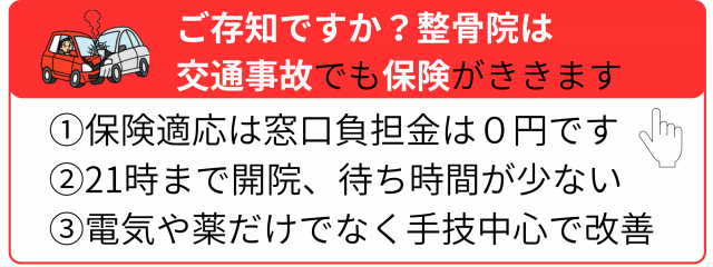 - 交通事故でのケガや18歳以下の急なケガは保険適応