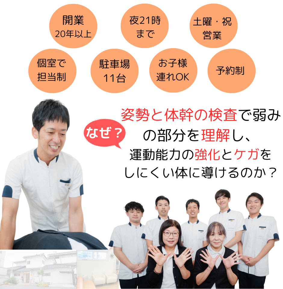 もちろん、痛みやコリを良くするだけではなく、再発を防ぐことにも自信があります。滋賀県彦根市で開院してから20年たちます。今では5人の施術者年間述べで1万人以上の方に喜んでいただくことができました。