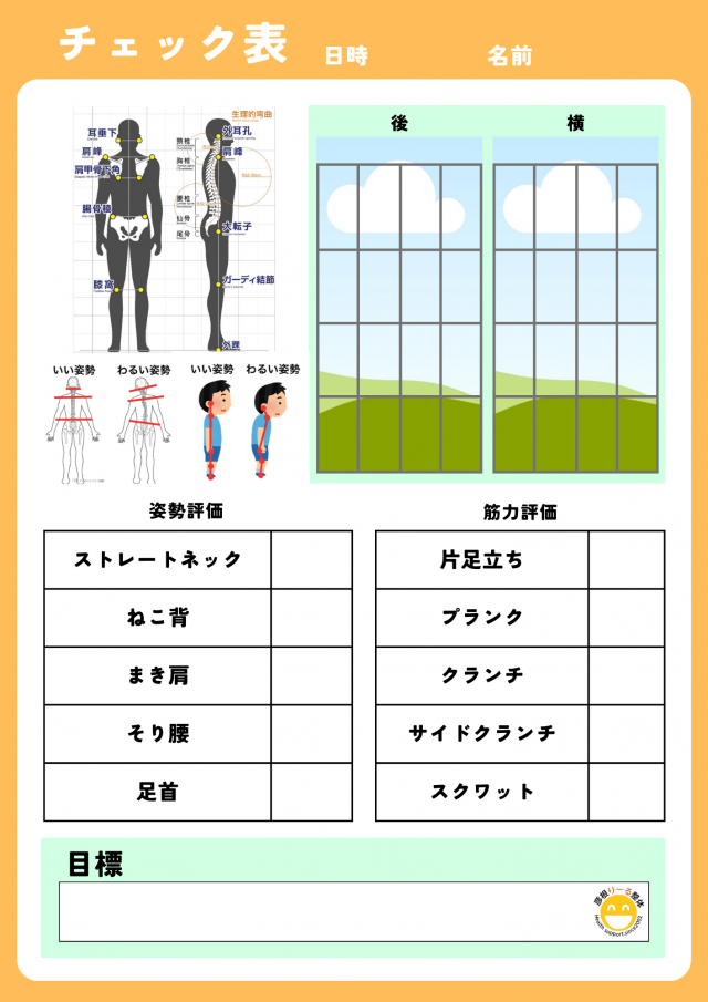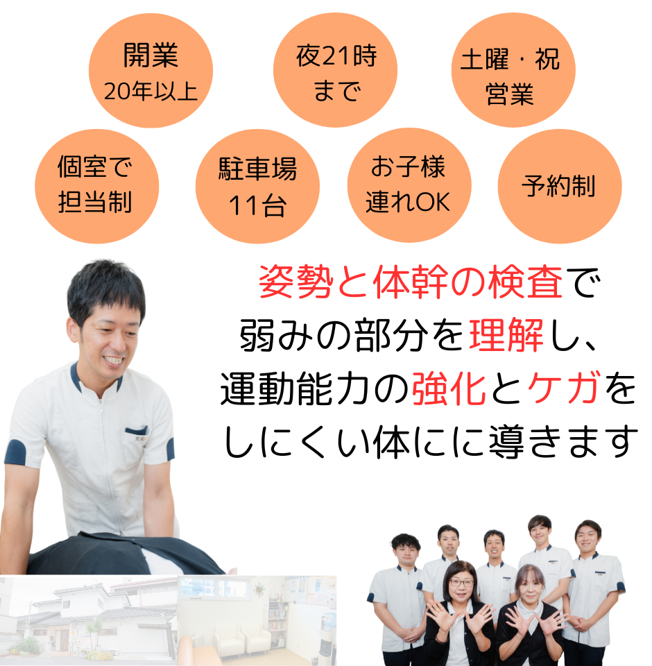 りーる整骨院の【子ども体幹整体】では、姿勢と運動器のチェックを初回にしっかりし、優しい整体と運動指導で、成長期の身体を正しく整えて鍛えていきます