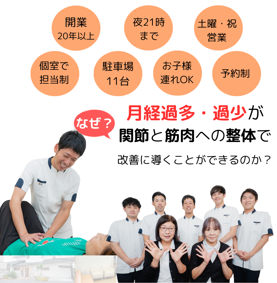一般的な原因を見てもわかるように月経過多や月経過少はホルモンバランスの問題、子宮自体の問題となります。となると、やはり内臓の状態を良くしていくことが大切です。