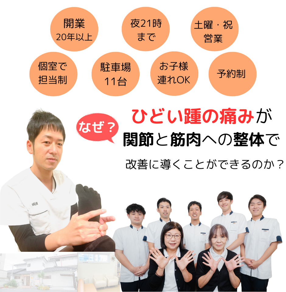 もちろん、痛みやコリを良くするだけではなく、再発を防ぐことにも自信があります。滋賀県彦根市で開院してから20年たちます。今では5人の施術者年間述べで1万人以上の方に喜んでいただくことができました。
