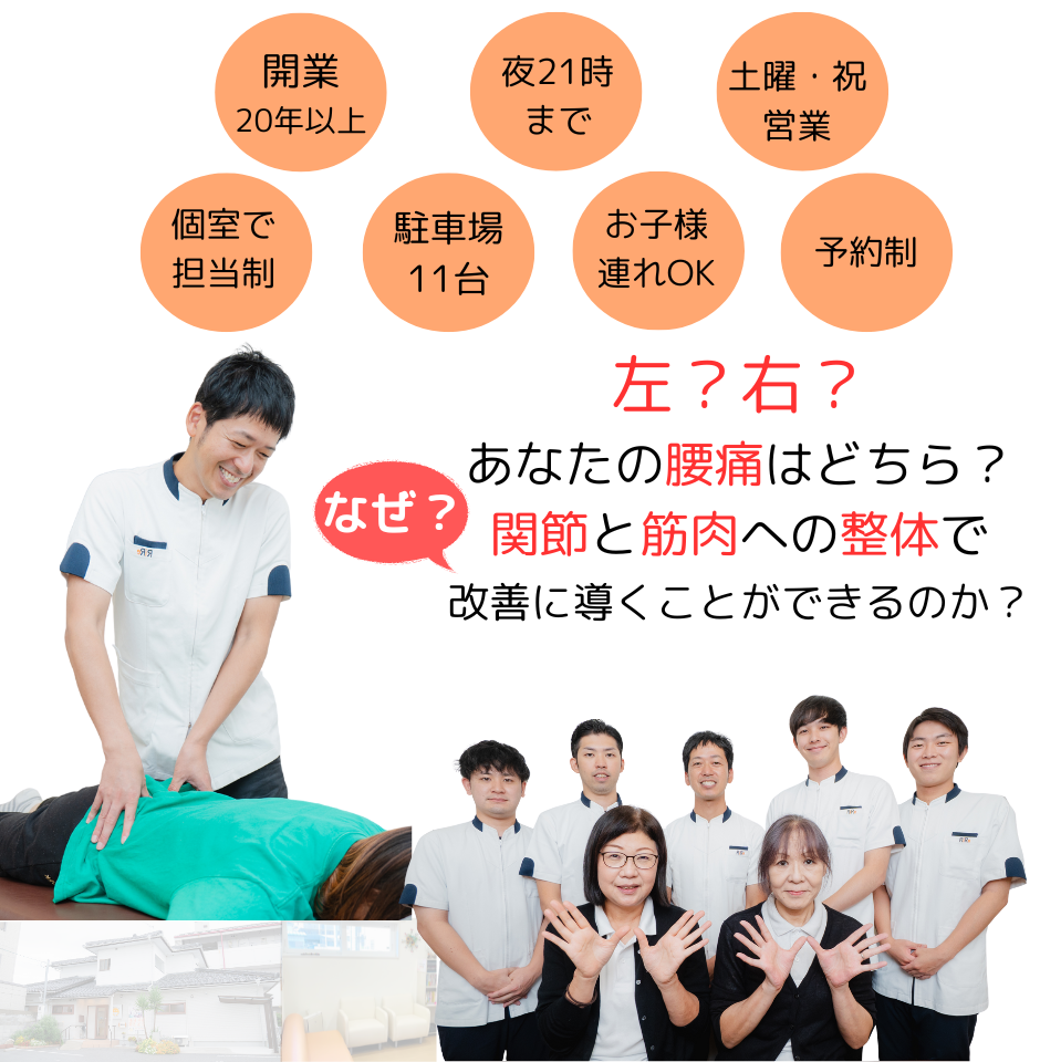 もちろん、痛みやコリを良くするだけではなく、再発を防ぐことにも自信があります。滋賀県彦根市で開院してから20年たちます。今では5人の施術者年間述べで1万人以上の方に喜んでいただくことができました。