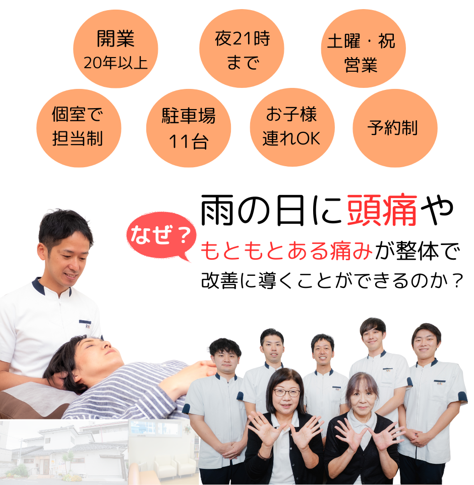 もちろん、痛みやコリを良くするだけではなく、再発を防ぐことにも自信があります。滋賀県彦根市で開院してから20年たちます。今では5人の施術者年間述べで1万人以上の方に喜んでいただくことができました。