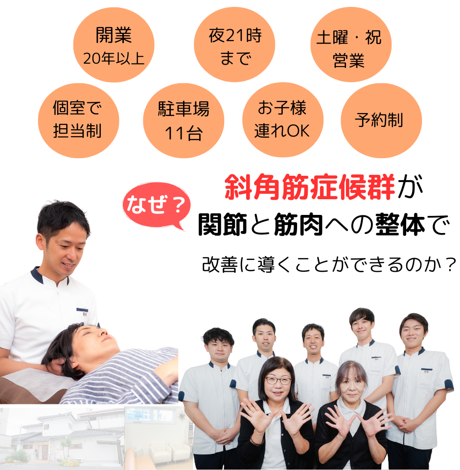 もちろん、痛みやコリを良くするだけではなく、再発を防ぐことにも自信があります。滋賀県彦根市で開院してから20年たちます。今では5人の施術者年間述べで1万人以上の方に喜んでいただくことができました。