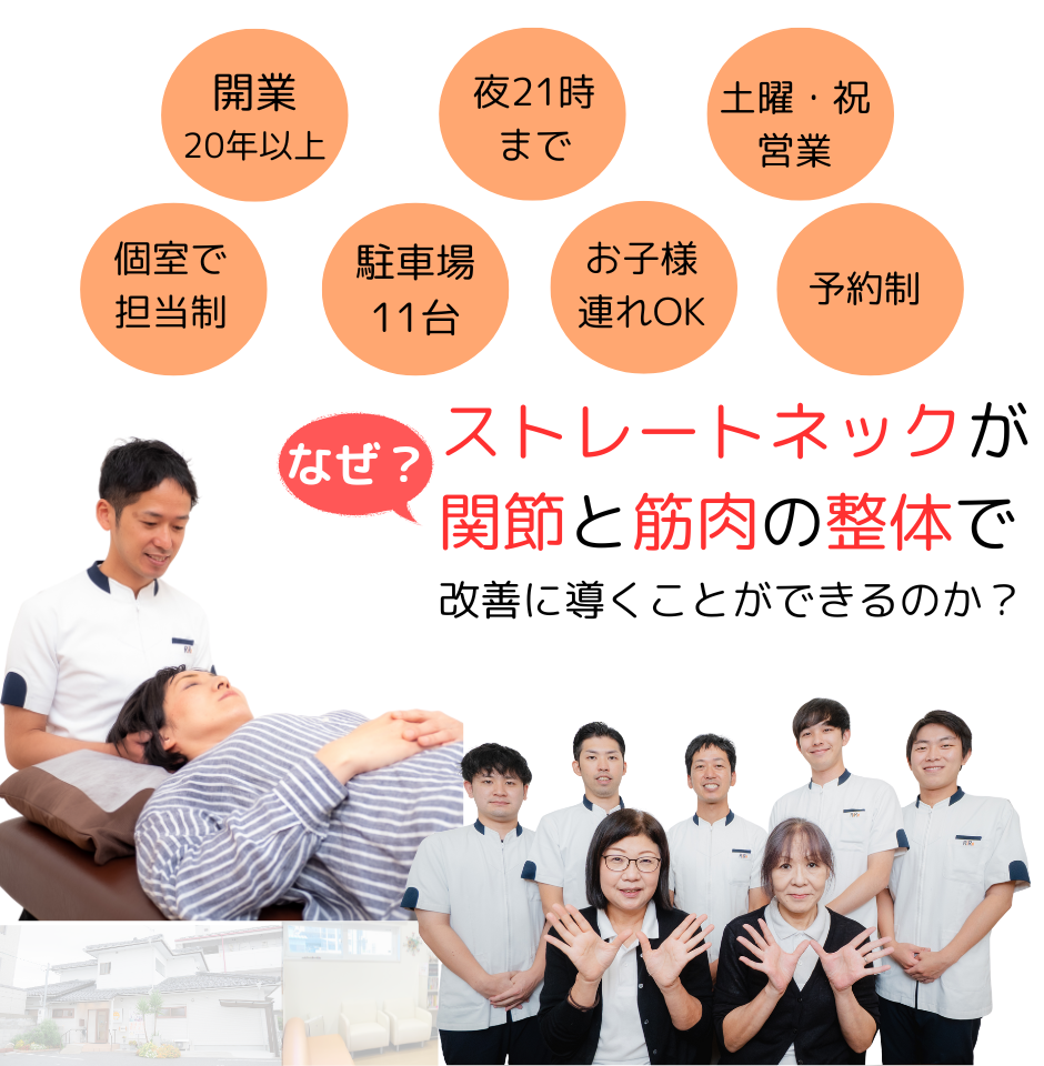 • 猫背・巻き肩の矯正 によりストレートネックの根本改善