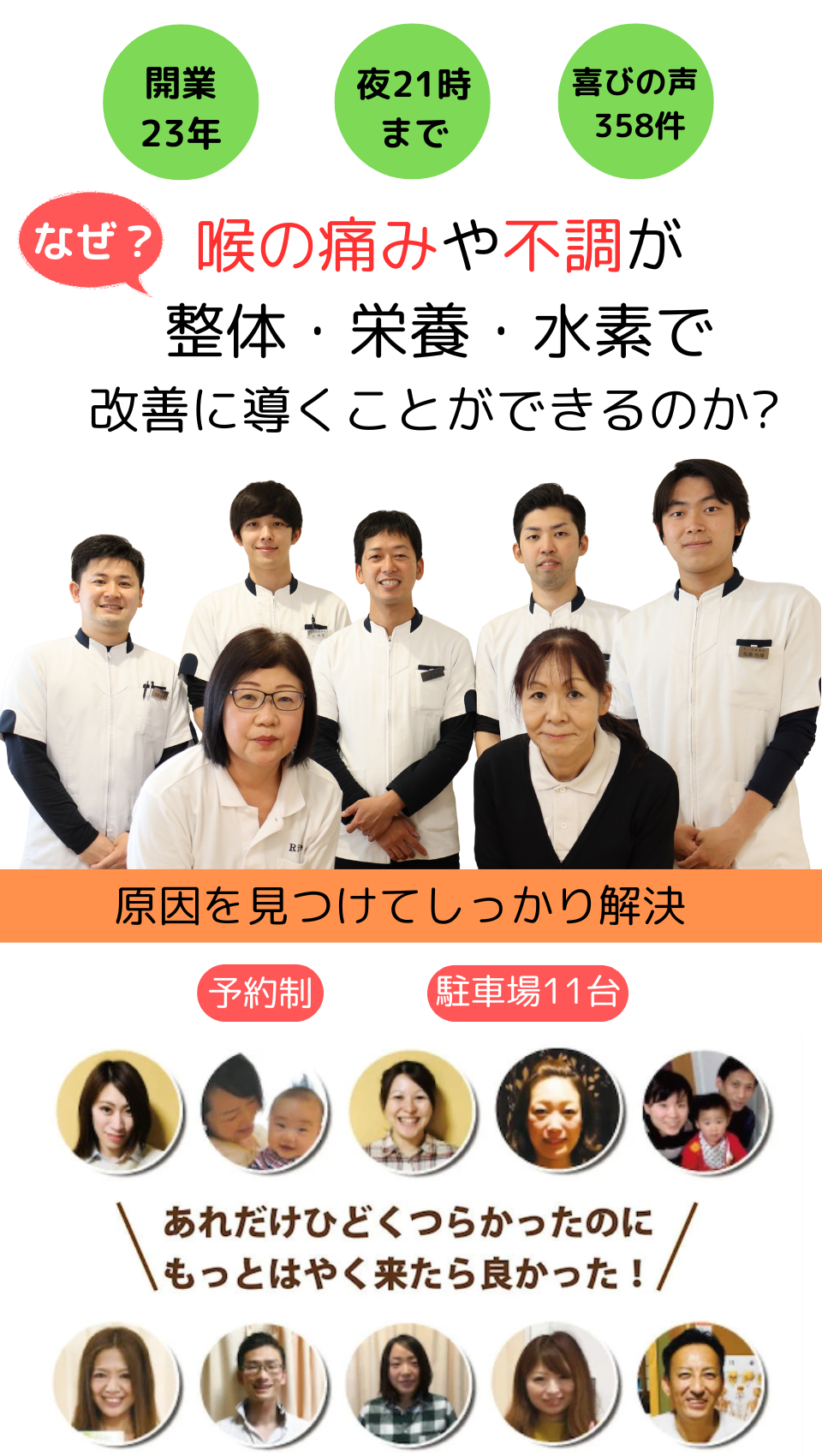 同じような症状の方をたくさん来ていただき、楽になり喜んでいただいております。